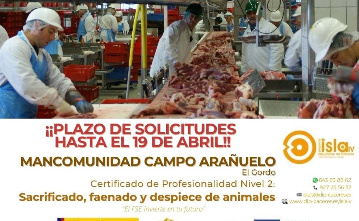 El curso, organizado por la Mancomunidad Campo Arañuelo, se realizará en las instalaciones de Cárnicas DIBE en El Gordo en horario de lunes a viernes de 09:00h a 14:00h