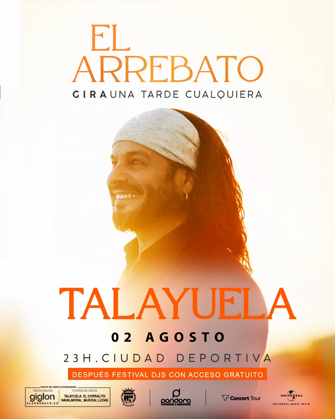 La ciudad deportiva de Talayuela acogerá el próximo 2 de agosto un concierto de El Arrebato, dentro de su gira 'Una tarde cualquiera'. Así lo anuncia la empresa organizadora, Pandora Festivales y Conciertos, que también avanza que a su término habrá un festival de dj,s, con acceso gratuito.