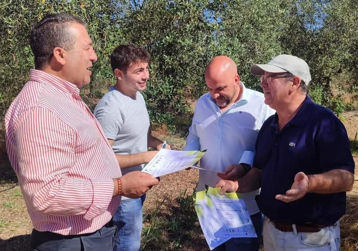El Ayuntamiento ha felicitado en persona a la empresa local Corisco e Hijos por su premio AOVE, en una visita que representantes locales hicieron por los olivares con el alcade a la cabeza.