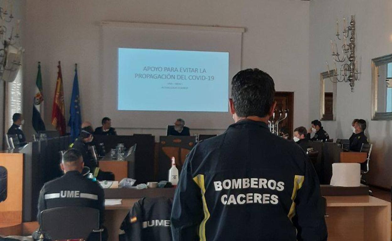 El salón de Plenos de la Diputación Provincial de Cáceres ha abierto hoy sus puertas para acoger el curso de formación que la Unidad Militar ... de Emergencias ha impartido a los bomberos del Servicio de Extinción y Prevención de Incendios, SEPEI. Posteriormente el curso se ha completado con la práctica en una de las residencias de Cáceres. Mañana domingo, 5 de abril, el equipo de bomberos de la Institución provincial podrá comenzar ya con la fumigación en las residencias de mayores y pisos tutelados de la provincia.