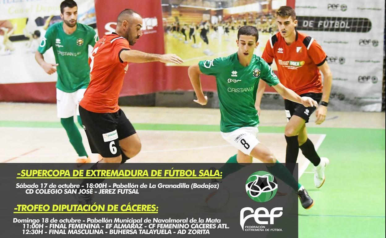 Dos de las competiciones más atractivas que ofrece el fútbol sala extremeño ya tienen fecha y sede asignadas para su inminente celebración. Por un lado, el pabellón de La Granadilla en Badajoz acogerá el próximo sábado 17 de octubre a las 18:00 horas la Supercopa de Extremadura que enfrentará a CD Colegio San José y Jerez Futsal, actuales campeones de Tercera División y Copa de Extremadura respectivamente. Una final inédita en la historia de este torneo que, como en anteriores ediciones, promete grandes dosis de espectáculo y emoción.