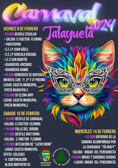 Ya se conoce la programación completa del Carnaval de Talayuela, en la que destacan los desfiles de escolares, el nocturno y el de la tarde ... del sábado, partiendo todos desde la calle Doctor Fleming.