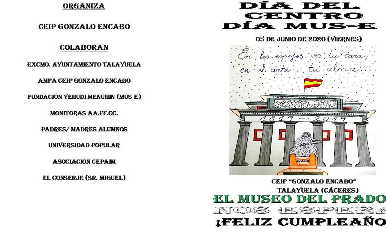 Para ello, y como bien sabéis, esta mañana, 5 de junio de 2020, queremos iniciarla celebrando nuestro especial DÍA DEL CENTRO, DÍA MUS-E 2020. Con esta iniciativa, además de seguir dando normalidad y continuidad a nuestra oferta educativa, queremos rubricar y dar proyección, como colofón, a nuestro Proyecto de Innovación de Biblioteca-REBEX, denominado «EL MUSEO DEL PRADO NOS ESPERA. ¡FELIZ CUMPLEAÑOS!. Este Proyecto, dinamizado por nuestro Equipo de Biblioteca y desarrollado por toda la Comunidad Educativa ha sido la base sobre la que ha pivotado todo nuestro trabajo a lo largo del curso 2019-20; haciendo del mismo un centro de interés que ha implementado toda nuestra labor docente y desarrollo curricular.