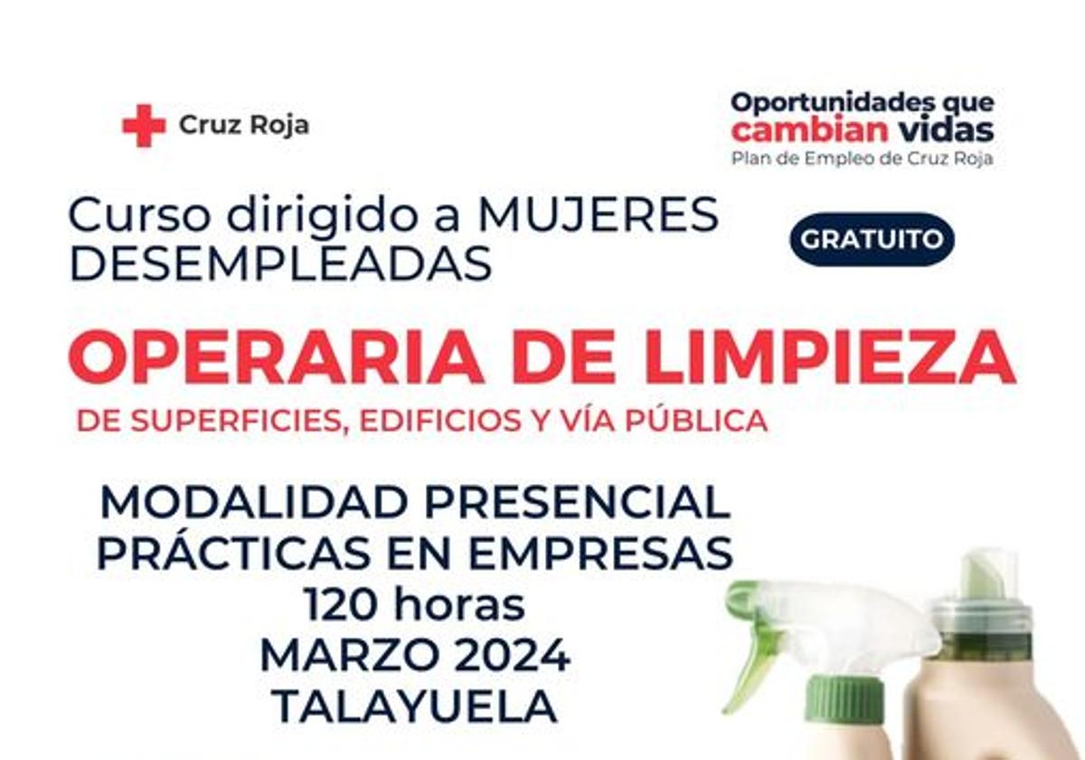 Cruz Roja Talayuela convoca un nuevo un curso gratuito, esta vez de operaria de limpieza de superficies, edificios y vía pública.