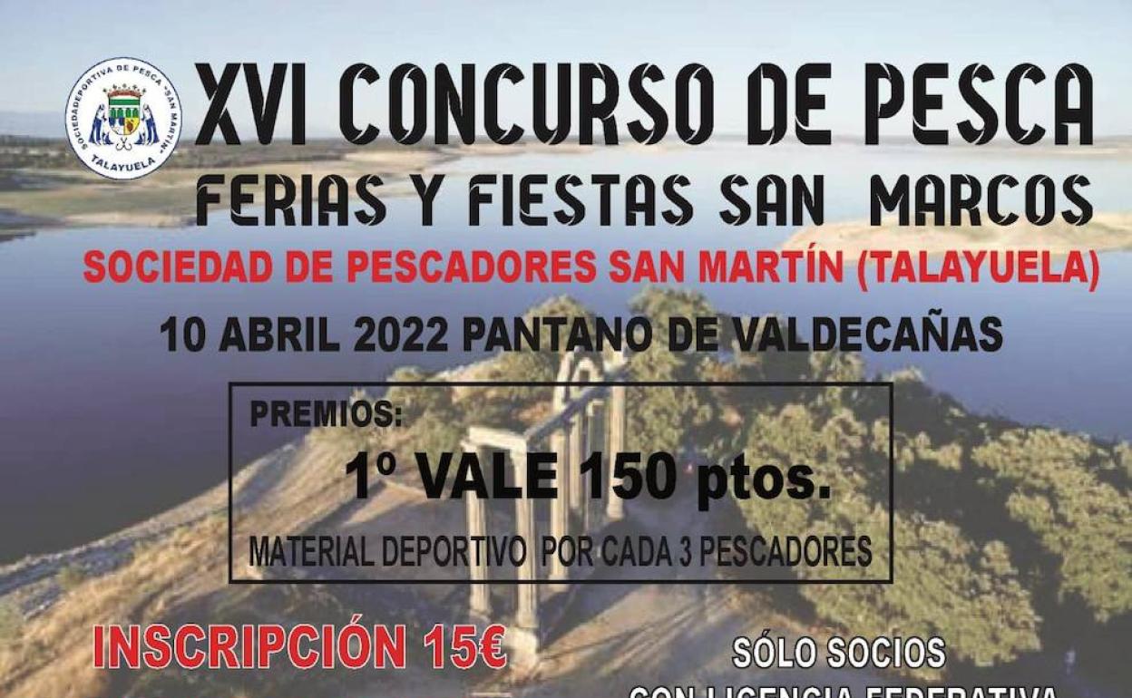 La Sociedad de Pescadores Deportiva 'San Martín' y el Ayuntamiento organizan la decimo sexta edición del 'Concurso de pesca local Ferias y Fiestas de San Marcos, que tendrá lugar en el Pantano de Valdecañas el día 10 de abril.