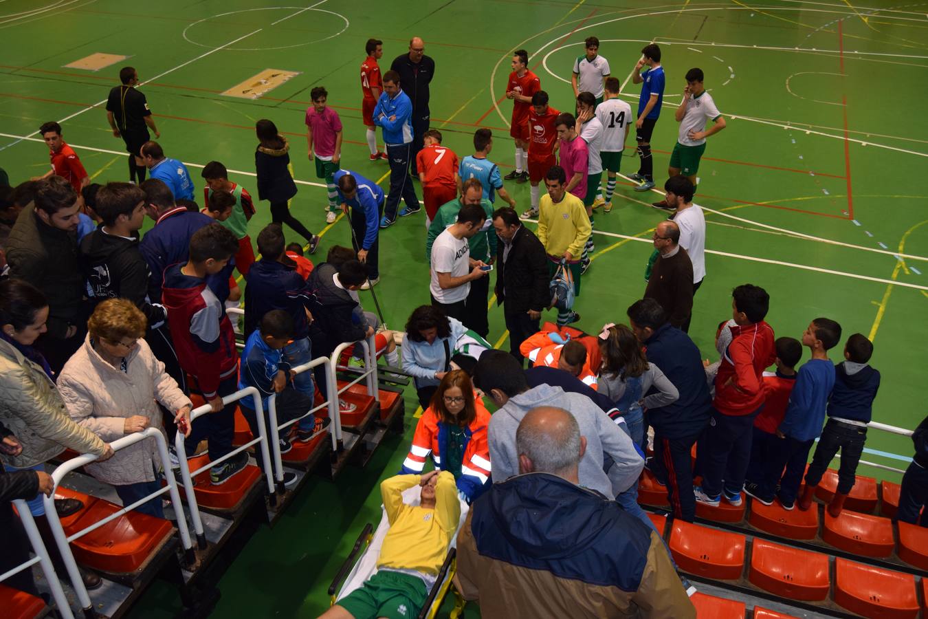 En el apartado incidencias, jugadores y aficionados se llevaron un gran susto tras el golpe sufrido por un jugador del Almendralejo, quién a cuatro minutos del final tuvo que ser retirado por los sanitarios del 112. El jugador almendralejense se resbaló tras un lance en el juego con un jugador talayuelano y no pudo evitar el fuerte impacto con el lateral de una de las gradas.