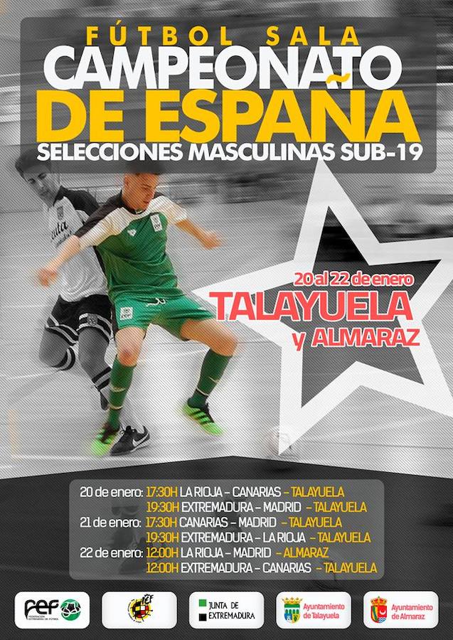 Extremadura, Canarias, La Rioja y Madrid disputarán este fin de semana en Talayuela y Almaraz la primera fase del Campeonato de España juvenil de fútbol sala que dará a una de ellas el pase a la fase final que jugarán las cuatro mejores selecciones autonómicas del país.