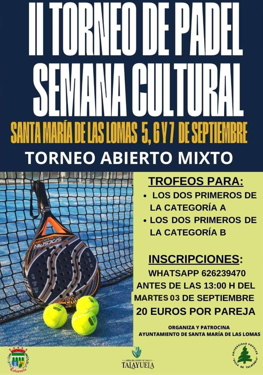 Dentro de la programación elaborada ha convocado el II Torneo de Pádel 'Semana Cultural', en formato abierto mixto.