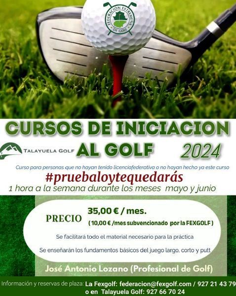 Si estás interesado/a y quieres iniciarte en este deporte para tener un primer contacto con el golf, la Federación Extremeña de Golf y Talayuela Golf te ayudan con este curso de iniciación a esta disciplina deportiva.
