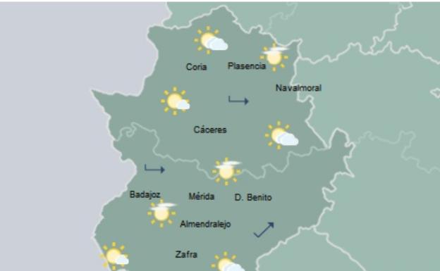 La Agencia Estatal de Meteorología prevé para este domingo en Extremadura intervalos de nubes altas, aumentando a nuboso y con nubosidad de evolución diurna, sin ... descartar chubascos ocasionales en el Sistema Central.