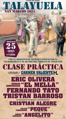 El domingo 25 de abril también a las 18.00 horas y de entrada gratuita, Talayuela contará con una Clase Práctica para cuatro alumnos de la Escuela Taurina de Badajoz como son Eric Olivera, Sergio Domínguez 'El Mela', Fernando Tato y Tristán Barroso. Al finalizar llegará uno de los mayores atractivos para los aficionados taurinos de la localidad con la celebración de un tentadero para los talayuelanos Cristian Alegre, Felipe Fernández 'Peque' y Ángel Correas 'Angelito'.
