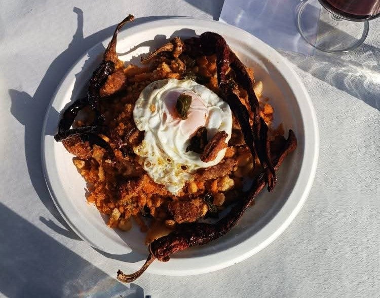 Los fogones y el olor a migas inundaron el pueblo. Huevos fritos, pimientos ahumados crujientes y patatas fueron protagonistas en una mañana en un ambiente distendido, lleno de risas, convivencia, música y por supuesto, una degustacion de migas extremeñas.