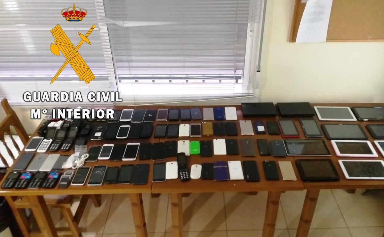 Han sido recuperados numerosos dispositivos electrónicos, como 74 teléfonos móviles, 12 tablets, 2 videoconsolas Play Station y diversos accesorios de telefonía móvil
