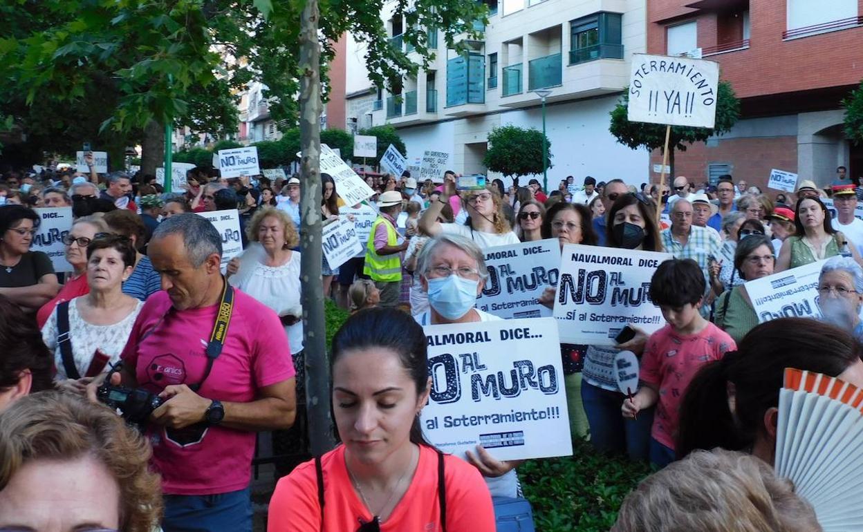 Así se inicia al manifiesto que leyeron el jueves varios oradores -entre ellos el conocido naturalista Joaquín Araujo- al término de la manifestación lúdica y reivindicativa que recorrió las calles de Navalmoral, convocada por la plataforma No al Muro, para rechazar, una vez más, que el tren de alta velocidad se construya en superficie en el tramo urbano, a pesar de estar ya adjudicada la obra. La Policía Local estimó en un millar el número de participantes.