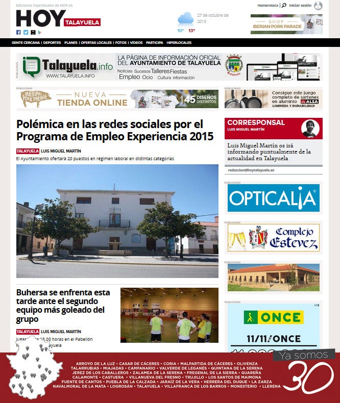 Visitar, navegar e informarse en la edición digital de HOY Talayuela es una nueva experiencia que, a la vez, aspira a satisfacer las necesidades de sus usuarios todos los días. Precisamente, los lectores ganan presencia, ya que se potencia su participación, y podrán seguir subiendo noticias y fotografías, a lo que hay que sumar los vídeos.