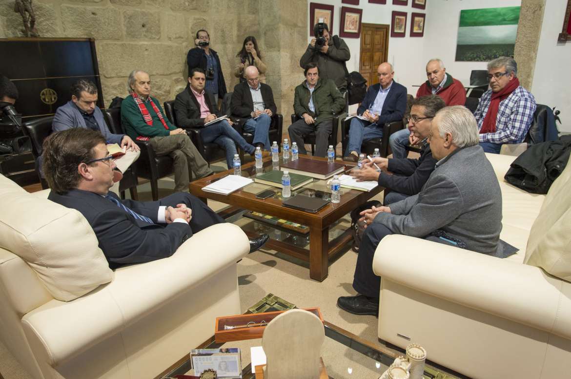 El presidente de la Junta de Extremadura se reúne en Mérida con responsables de UPA-UCE, Asaja y cooperativas agroalimentarias