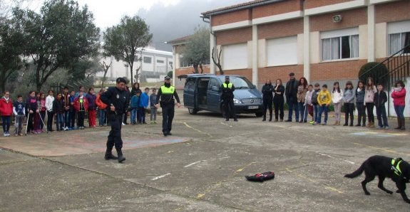 Primero se realizó en el colegio Ejido y posteriormente en el Gregoria Collado, con la actuación de tres perros. «Durante la exhibición se vio la destreza de los animales en la detección de sustancias estupefacientes», señalaban los agentes de Jaraíz.