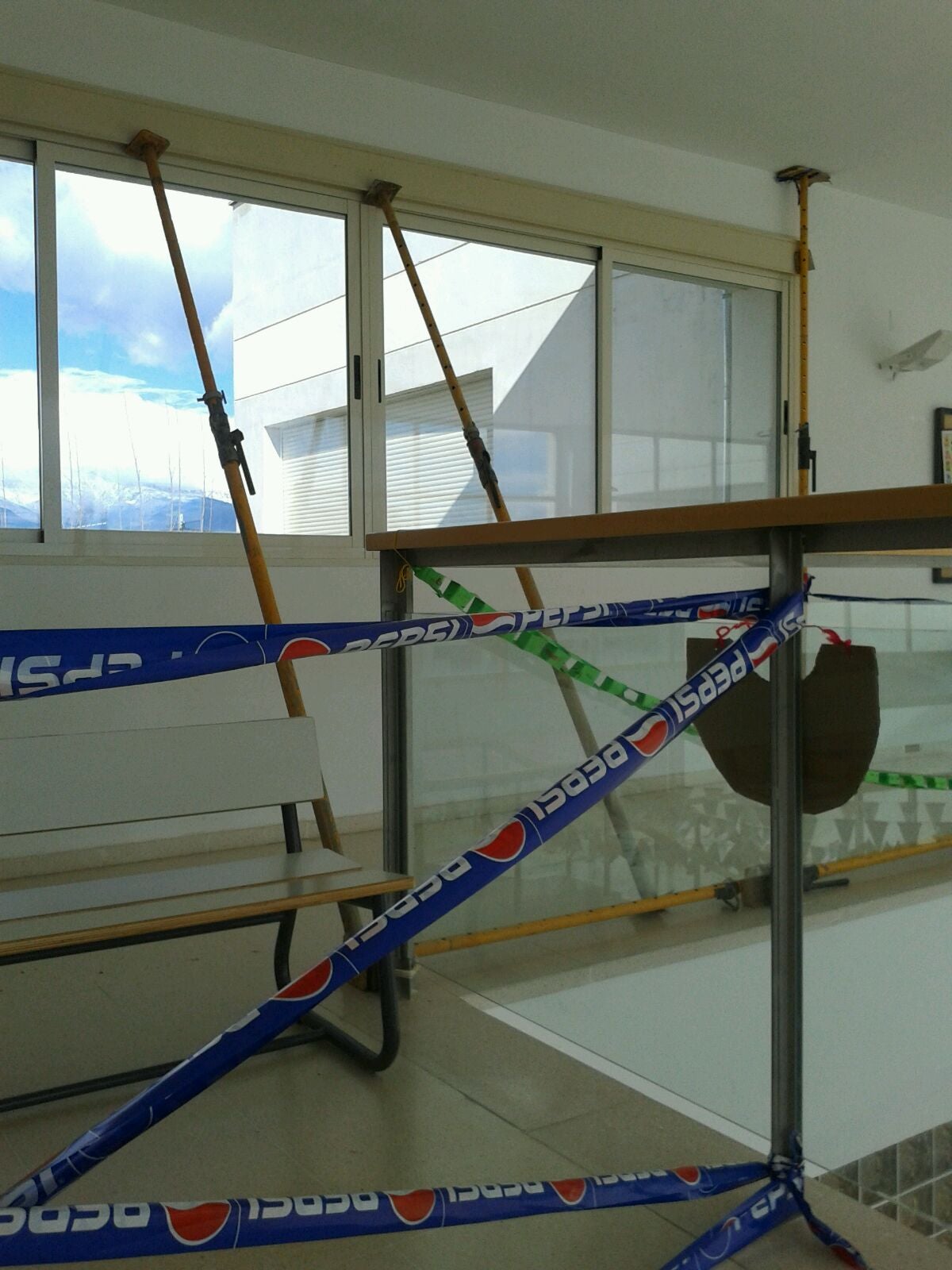 Padres y madres de alumnos tenían decidido que sus hijos no entraran a clase tras lo ocurrido el lunes, al tener que apuntalar unos ventanales que no resistían la fuerza del viento