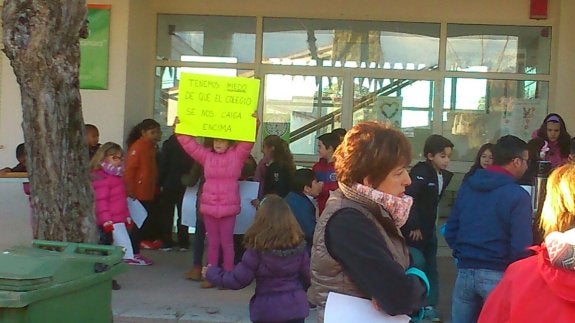 Padres, madres y niños se concentraron a las puertas del colegio San Pedro de Alcántara, sin entrar a clase, para denunciar su estado