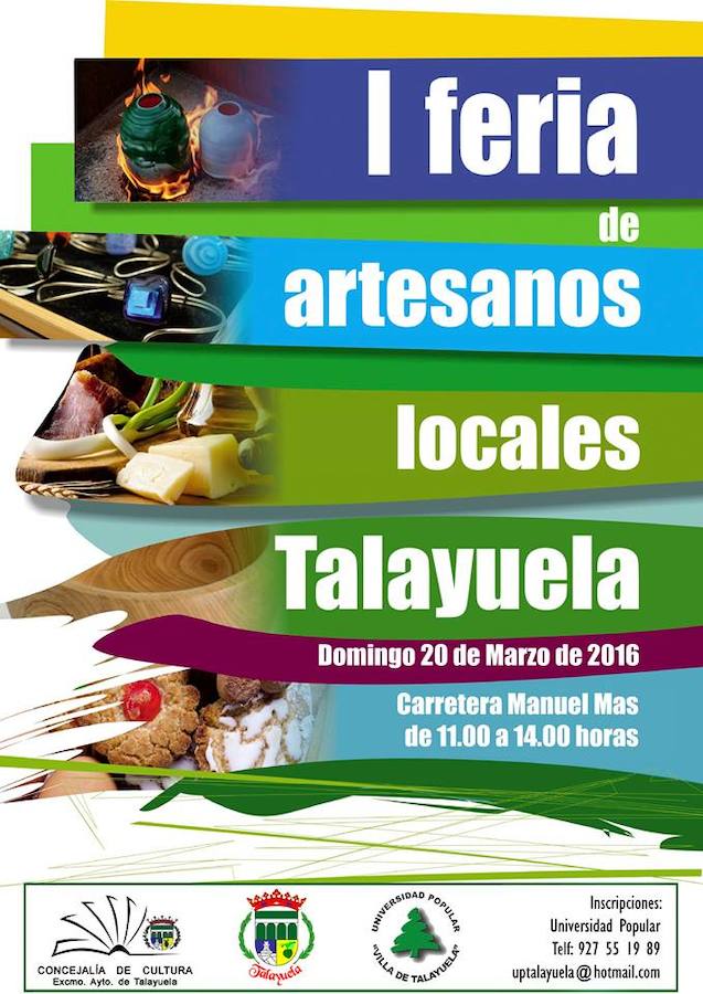El Ayuntamiento de Talayuela, la Universidad Popular y artesanos de la localidad colaboran en la organización de la primera edición de la Feria de Artesanos ... Locales que se desarrollará en la Calle Manuel Más el próximo domingo, 20 de marzo, en horario de 11.00 horas a 14.00 horas.