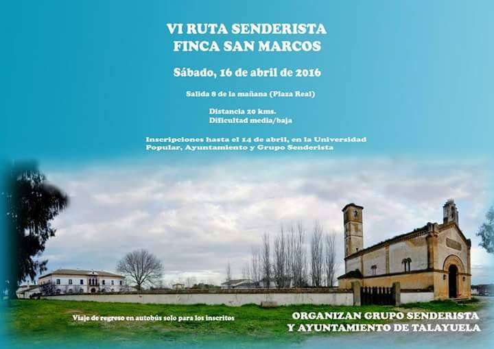 El próximo sábado, 16 de abril, el Grupo Senderista de Talayuela junto con el Ayuntamiento han organizado la sexta edición de la Ruta a la ... Finca de San Marcos.