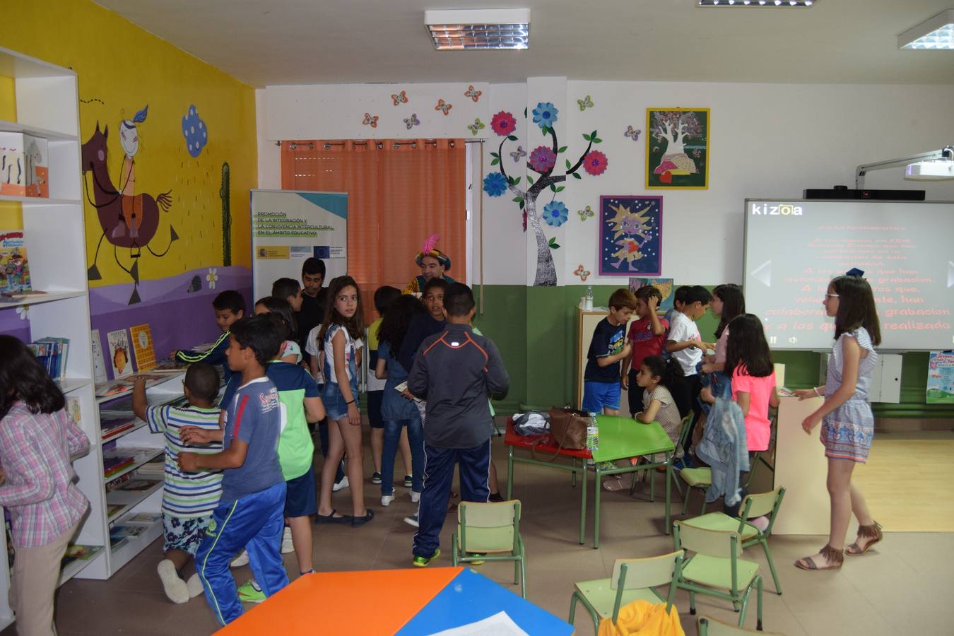 Por fin, y después de mucho trabajo, esfuerzo e ilusión de unos maestros comprometidos con la Educación extremeña, se ha hecho realidad la creación de esta biblioteca que supondrá un espacio para el fomento y animación a la lectura de nuestros peques. Se ha ordenado, limpiado, pintado, coloreado y se ha llenado de libros esta maravillosa biblioteca, que ambientada con sus maravillosos dibujos, realizados por nuestros maestros, y con sus preciosos cuadros, obras de Violeta Monreal, ha hecho de ella un enclave ideal e idílico para favorecer el placer de la lectura. También ha sido un día especial por su carácter solidario, ya que los alumnos, con sus tacitas literarias y con sus aportaciones voluntarias, han conseguido recaudar sendas ayudas económicas para la Asociación Oncológica Extremeña de Extremadura y para ayudar a la ya nuestra niña VALERIA. Este día se hizo la entrega a sus representantes, explicaban desde la dirección del Centro.