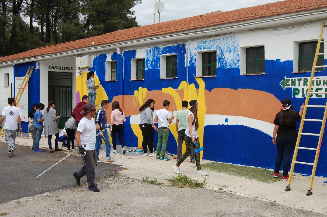 Pero la presencia de los vecinos no se queda en una actitud pasiva y contemplativa. Para involucrarles, al comienzo del trabajo cada trío de artistas realiza un taller al que puede unirse quien lo desee. «Les damos oportunidad de pintar para que experimenten en primera persona el proceso y formen parte de una obra que quedará en su municipio».