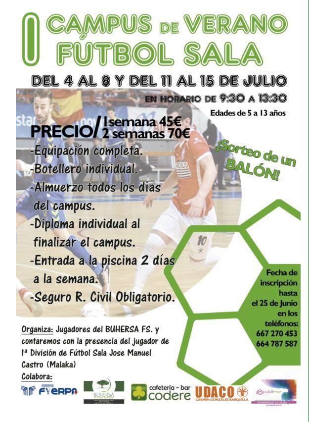 El Campus, organizado para niños y niñas de 5 a 13 años, estará dirigido por los jugadores del Buhersa y contará con la presencia del jugador de Primera División de Fútbol Sala Jose Manuel Castro.