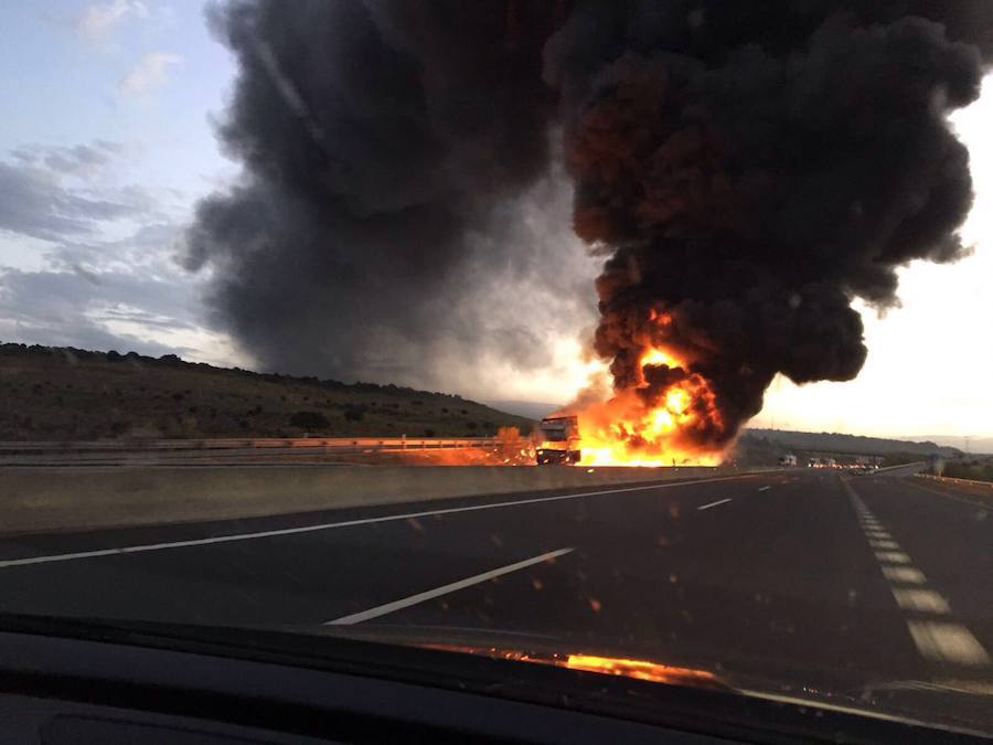 Así lo explicaban a Efe fuentes de la Guardia Civil de Tráfico, según las cuales el camión, que ya ha sido retirado de la carretera, quedaba prácticamente calcinado.