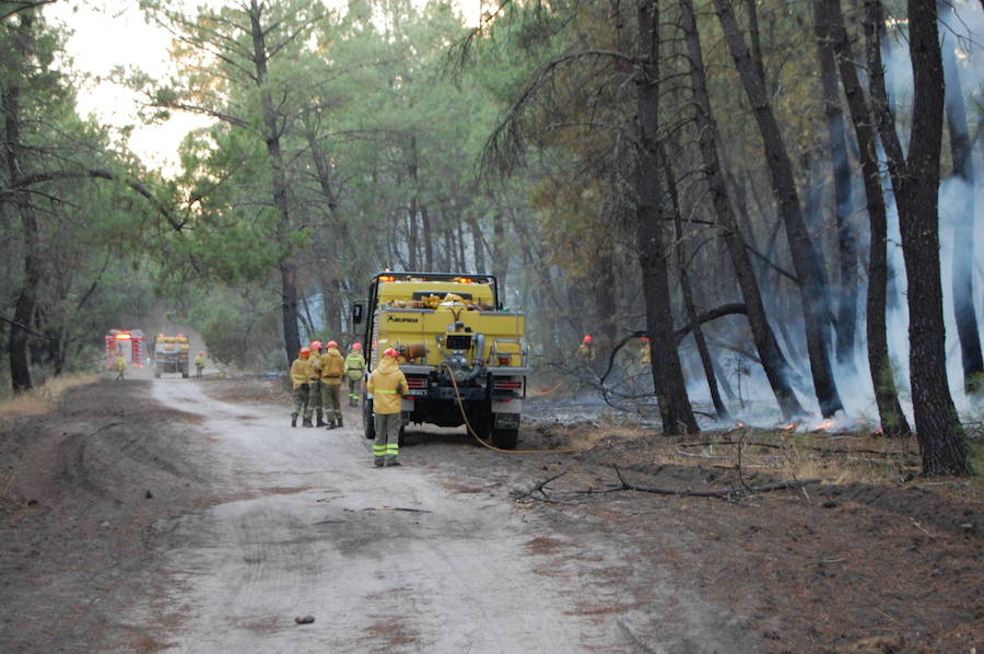Sobre las 19.15 horas los agentes forestales recibían el aviso de tres incendios en el Pinar de Talayuela en una de las pistas que llevan hasta el río Tiétar con lo que hacía indicar que los incendios estaban siendo provocados.