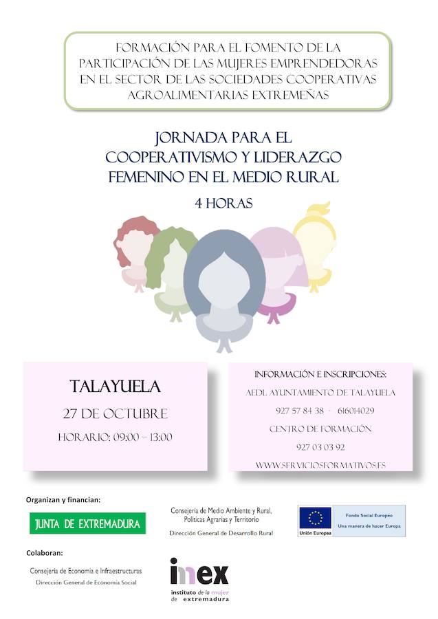 Mañana jueves, 27 de octubre, tendrá lugar en Talayuela la celebración de una Jornada denominada Cooperativismo y Liderazgo Femenino en el Medio Rural.