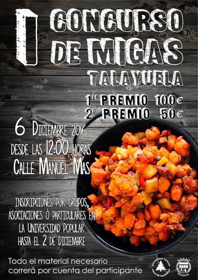 Mañana, 2 de diciembre, termina el plazo para apuntarse al I Concurso de Migas de Talayuela que tendrá lugar en la calle Manuel Más de ... la localidad el día 6 de diciembre.