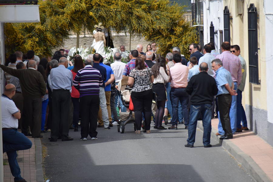 El acto tiene su fin ... en el arco de flores silvestres construido por varios vecinos que siguen manteniendo esta tradición de más de 50 años en nuestra localidad. Para construirlo utilizan escoberas blancas y amarillas para darle cuerpo al arco, aprovechando que están en plena floración. Después continúan cogiendo todo tipo de flores silvestres que encuentren en los alrededores del pueblo para terminar de embellecer el arco introduciéndolas entre las escoberas ya colocadas.