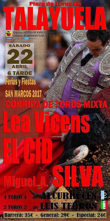 Lea Vicens, El Cid y Miguel Ángel Silva a partir de las 18.00 horas en la plaza de toros de la localidad