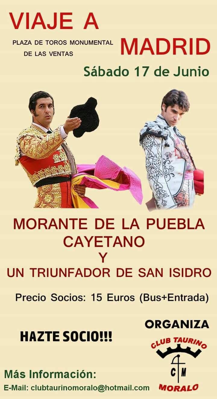 El Club Taurino Moralo viajará a Madrid el próximo día 17 para presenciar la denominada Corrida de la Cultura en la plaza de toros de ... las Ventas, que viene a cerrar la prestigiosa Feria de San Isidro.