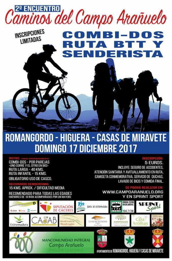 Romangordo, Higuera y Casas de Miravete acogerán el domingo el 2º Encuentro Caminos del Campo Arañuelo, que tan buena acogida tuvo en su estreno hace ... unos días en Saucedilla con cerca de 160 participantes. De nuevo está organizado por el área de Dinamización Deportiva de la Mancomunidad de Municipios, conjuntamente con los tres ayuntamientos.