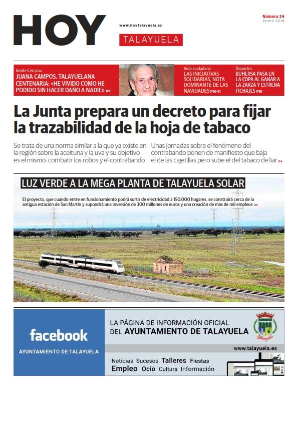 Este miércoles, día 17 de enero, sale a la calle el número 24 del HOY Talayuela correspondiente a los meses de diciembre y enero, con ... mil ejemplares totalmente gratuitos financiados por firmas comerciales de la localidad y regional, para ser distribuidos en los puntos habituales de interés y de mayor concurrencia pública.
