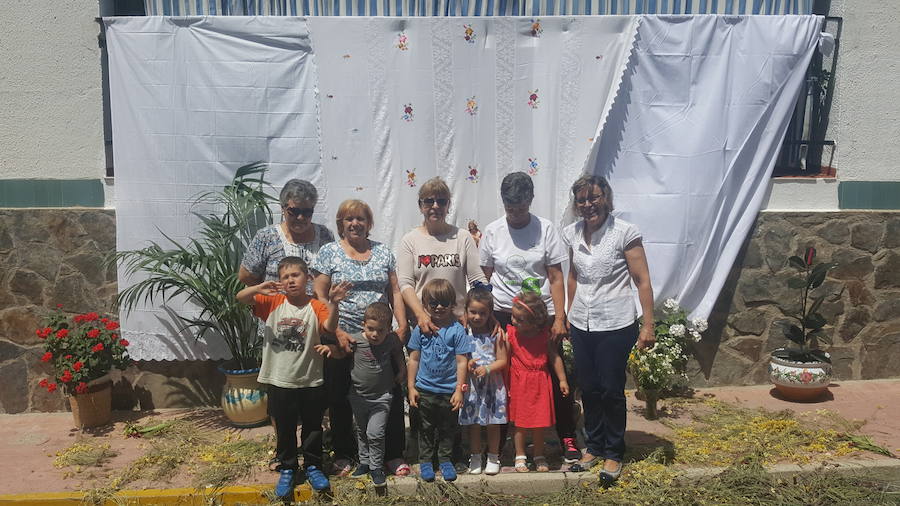 Decenas de niños y niñas, con sus trajes y vestidos de Comunión, protagonizaron en la mañana del domingo la tradicional procesión del Corpus Christi, que recorrió las calles de la localidad.