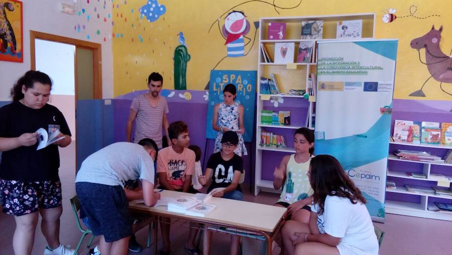 El día 29 de junio, para finalizar el curso escolar 2017-18, presentamos en nuestra Biblioteca de Infantil del Gonzalo Encabo, el libro Una docena ... de fantasías. Este libro ha sido el producto final del magnífico trabajo que buena parte de nuestro alumnado de sexto ha realizado en los últimos meses, con el apoyo y colaboración, a lo largo de todo su proceso creativo, de sus tutores/as y maestros/as, de su maestra CAEP, de Julio Pedrosa, artista en el centro del Programa Mus-e, Luis Barrera, de la Fundación CEPAIM y a través de su Programa para la Promoción de la Integración y la Convivencia Intercultural en el Ámbito Educativo, financiado por el Ministerio de Empleo y Seguridad Social a través de su Dirección General de Migraciones (DGM) y cofinanciado por el Fondo de Asilo, Migración e Integración (FAMI), además de otras personas de la comunidad educativa del CEIP Gonzalo Encabo.