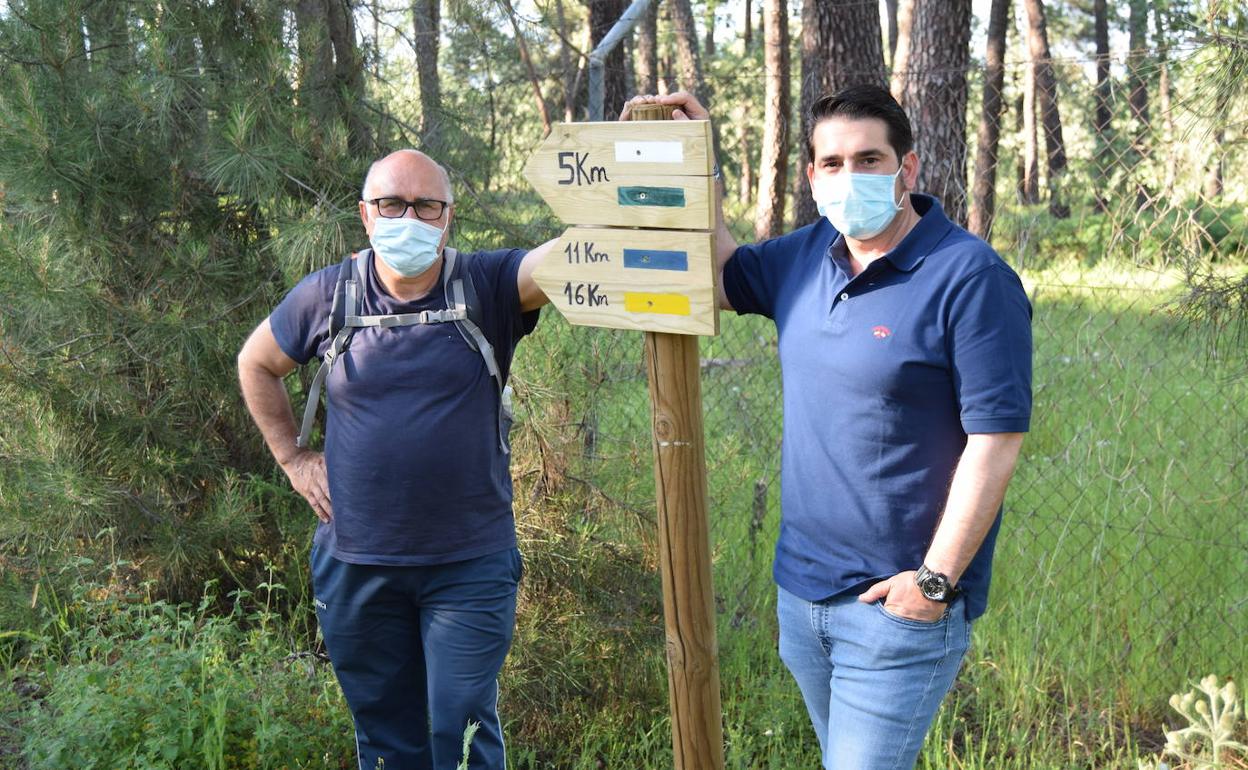 El alcalde de Talayuela, Ismael Bravo, junto al concejal de Deportes, Francisco González, han presentado una nueva ruta senderista en el entorno natural del pinar natural de la localidad, un espacio muy cercano al casco urbano Talayuela.