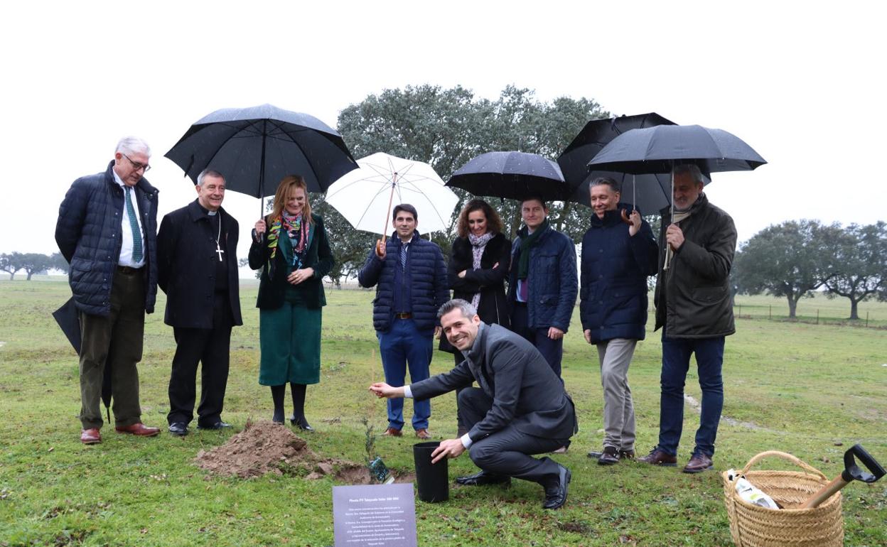 De esta manera, la construcción del gran parque fotovoltaico de 300 megavatios que se va a instalar en el municipio cacereño de Talayuela echó ayer a andar con la plantación de la 'primera encina', que no piedra, para remarcar la implicación social y medioambiental del proyecto. Este tiene una inversión directa de 225 millones de euros y generará hasta 400 empleos en su pico más alto.