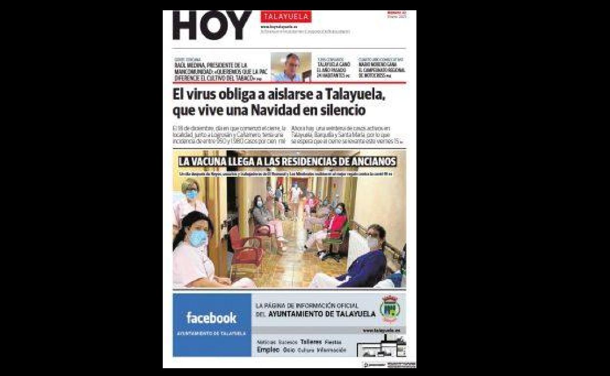 Este miércoles, día 13 de enero, ha salido a la calle el número 42 del HOY Talayuela correspondiente a los meses de diciembre de 2020 y enero de 2021, con mil ejemplares totalmente gratuitos financiados por firmas comerciales de la localidad y regional, para ser distribuidos en los puntos habituales de interés y de mayor concurrencia pública.