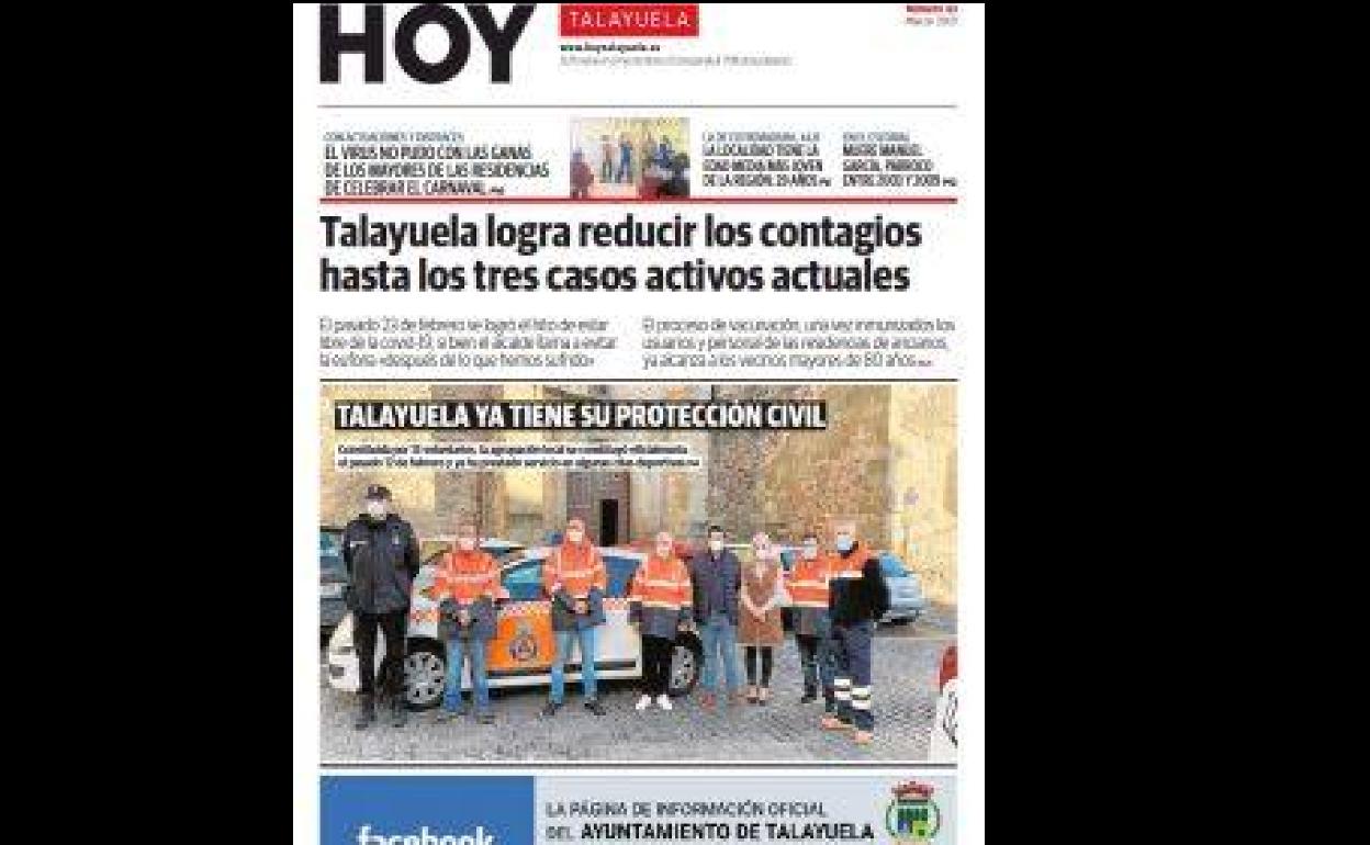 Este jueves, día 11 de marzo, ha salido a la calle el número 43 del HOY Talayuela correspondiente a los meses de febrero y marzo, con mil ejemplares totalmente gratuitos financiados por firmas comerciales de la localidad y regional, para ser distribuidos en los puntos habituales de interés y de mayor concurrencia pública.