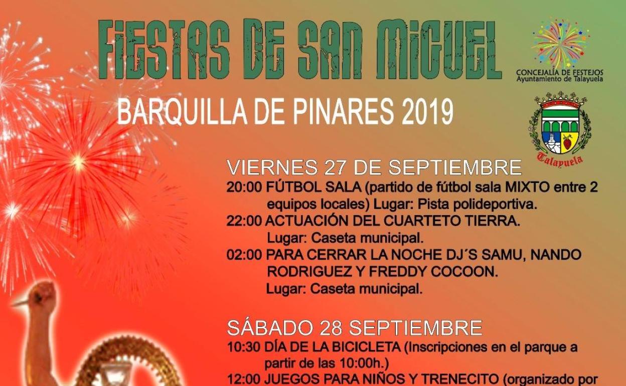 Hoy sábado las actividades han comenzado a las 10.30 horas con el Día de la Bicicleta. Desde las 12.00 horas juegos y trenecito ... son las actividades protagonistas para los más pequeños. A las 14.00 horas será el momento de la gran paella en la caseta municipal. Por la tarde, llegará la suelta de tres vaquillas al estilo tradicional a las 18.00 horas en la plaza de toros, volviendo por la noche las actuaciones musicales. Comenzarán a las 22.00 horas la orquesta 'Atrapasueños Band' con un repertorio bailable para todo tipo de público, abarcando de los temas más clásicos bailables, pasando por temas de animación, hits del verano y música pop rock nacional e internacional. Terminarán la noche los dj´s residentes en la comarca de la Vera Alex Rodríguez y Jhosep Maw.