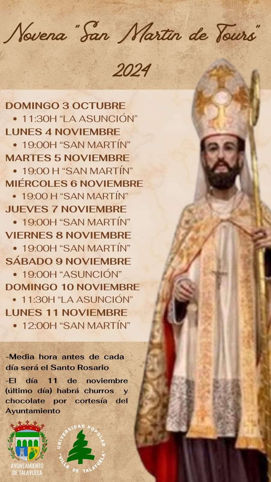 El 11 de noviembre es la festividad litúrgica del patrón talayuelano