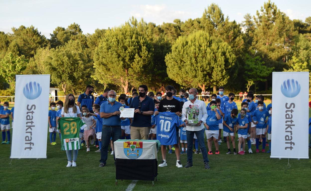 Previo al partido, el C.P. Talayuela, la Escuela de Fútbol y el Ayuntamiento del municipio homenajearon con orgullo al jugador del Betis Rodrigo Sánchez 'Rodri' por ser el primer talayuelano en jugar en Primera División.