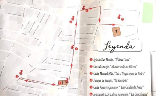 El evento contará con nuevos decorados para la puesta en escena de las diferentes localizaciones. El encendido de luces comenzará en la Plaza del Ayuntamiento, primer escenario, donde se representará la escena de 'La Última Cena'. En la zona del 'Malagón', muy cercana a la primera escena, se representará 'el Huerto de los Olivos' y desde ahí la comitiva se desplazará por la calle Manuel Más. A lo largo de este último recorrido los visitantes verán 'Las Negaciones.' La representación continuará en el Parque Infantil de la calle Manuel Más donde se realizará 'El Sanedrín' para proseguir por las calles de Las Madres y Álvarez Quintero donde se llevarán a cabo 'Las Caídas'. La última parte de la obra y por lo tanto el último escenario acogerá 'La Crucifixión' que se representará junto a la iglesia nueva.