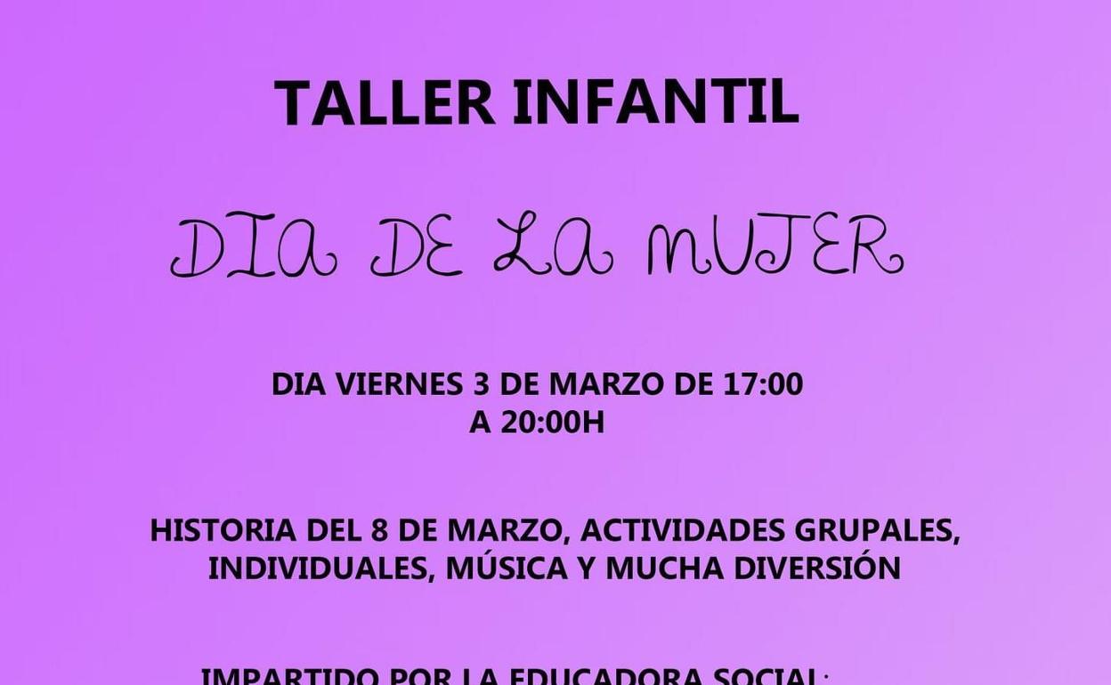 Atendiendo al principio de que 'en la educación está el origen del cambio que nos llevará a la igualdad', el Ayuntamiento de Talayuela a través de la Universidad Popular ha organizado un taller infantil que se desarrollará este viernes 3 de marzo de 17 a 20 horas en las instalaciones de la propia Universidad Popular.