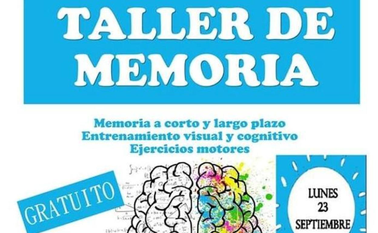 El taller de memoria dará comienzo el próximo 23 de septiembre en horario de 11.00 a 12.30 horas los lunes por la mañana.